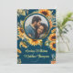 Country Rustic Sunflower Navy Blue Photo Invitation