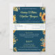An elegant burst of sunflowers against a navy blue backdrop creates a stunning and eye-catching display for your wedding details. Featuring delicate script calligraphy and a place to personalise with you photo for that extra special touch. Perfect for Spring, Summer, and Fall weddings!