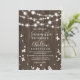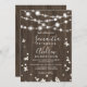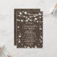 Country rustic wood string lights floral wedding with white hand painted thin flowers on brown wood. Perfect theme for country, barn, outdoor wedding.