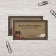A very primitive country business card featuring a burgundy (red) Saltbox house grouping with pineapple, grubby candle and wooly sheep all surrounded by a primitive checked border. Very primitive country with warm primitive colour palette of tan, burgundy, mustard yellow, and black. A lovely business card for any crafter, country business owner or for anyone who loves country, primitives or folk art.