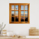 Enhance any decor with this picturesque wooden window illusion poster. The view from your faux window features a flying bird in the country. The poster was made in high definition (300 dpi) so it can be made larger without losing the image quality.