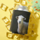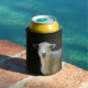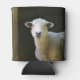 This can cooler features a sweet gentle sheep standing in the door to his home in Connecticut.