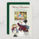 Stylish festive flat style Christmas greeting card done in off white, with country primitive graphics of a colourfully dressed snowman and a little girl. A rectangular photo area, above the graphics is ready to personalise with your picture. Custom text and greeting, at the top of the card, is ready to read what you want.