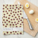 This springtime kitchen towel features hand-drawn ladybugs dancing across a sweet yellow and white gingham pattern background, with the customisable text "Hello, Spring!"