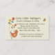 Perfect for the country craft store, clothing or antiques. This cute country design has two twigs with country colours and a little chicken on the left side of the design. A little bumblebee flies in the top left corner. The background is a creamy colour. Matching design is on the back of the card. Customise this design for your country business.
