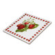 Decorate your kitchen with this painted strawberry tile. This tile features a watercolor painting of a strawberry plant and a graphically created strawberry border.