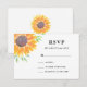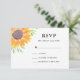 This charming Sunflower Wedding RSVP card features an original watercolor painting of a yellow sunflower and green leaves on a white background with black text.