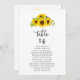 Country Sunflower Table Number Seating Chart Cards