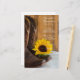 Let the guests of your rural farm or ranch theme sweet fifteen celebration event know what they are going to eat with the charming Country Sunflower Western Quinceañera Party Menu. Personalise it with the salad or first course, entree or second course and dessert or third course. This casual yet classy custom rustic chic sweet 15 menu features a quaint floral photograph of a yellow sunflower blossom, brown leather cowboy boots, and weathered barn wood. Perfect inspo for your cowgirl or vaquera.