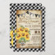 Country Sunflowers Gingham Check Boy Baby Shower Invitation