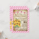 Country picnic inspired design with pink gingham check and sunflower bouquet in a mason jar wrapped in burlap and lace and tied with twine rustic baby shower invitation card.