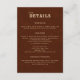 Complete your western wedding suite with this “Country Terracotta” details card, designed to coordinate beautifully with your tooled-leather invitation set. Featuring a deep rust-terracotta background with a subtle faux leather texture and soft cream lettering, this card brings warm country charm and a cohesive rustic feel to your stationery.