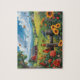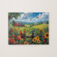 Country View Birds Sunflowers Red Barn Scene Jigsaw Puzzle