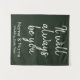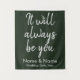hunter green custom wedding backdrop for reception, wedding reception calligraphy back drop, wedding photo booth tapestry backdrop, wedding reception banner, it will always be you, custom wedding backdrop for ceremony, wedding photobooth rustic wedding decor, engagement party bridal shower banner, wedding head table couple backdrop, personalised names wedding back drop