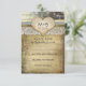 country rustic wedding reply cards with vintage love heart, ivory lace and old wood and paper background.