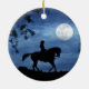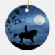 A cowgirl loping her horse in the light of a full moon. A pretty country western Christmas ornament.