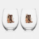 Country Western Flowers with Cowboy Boots Stemless Wine Glass
