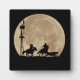 A pair of team ropers in a large antiqued moon with a windmill. A great country western accent decor piece.