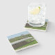 The coasters are gorgeous, a quality feel and heavy weight. They look like a precious archeological find. A rustic stone juxtaposed with a modern floral black and white print. I like the way the print goes slightly imperfect on the cut stone edges giving them a kind-of natural beauty.
