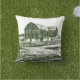 Countryside landscape woodcut style farm house cushion