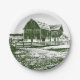 Countryside landscape woodcut style farm house paper plate