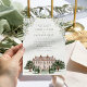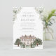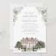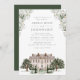 This design features a gorgeous countryside manor adorned with white floral and greenery.
