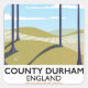County Durham, England train poster, a vintage style holiday print with a cute owl sitting in tree.