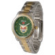 Very good quality watch that looks good whether dressing up or down. The band is sturdy. The watch is rather large so might not work for smaller folks. Recommended as a good gift. Printing is just a touch light but adds a nice touch of personalization.