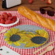 Plates match other wedding decor in my store under western mountain road. See sunflowers and a road in Wyoming. As you look down the road you see mountains and the gateway to Yellowstone National Park. Look at all the printed products.