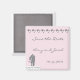 Couple cake topper wedding save the date magnet with hearts accent on light pink background. Makes perfect fridge magnet to remember the date!