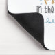 The product itself is good quality and I like the simplistic elegant design. The only criticism I have is that it's not really accurately represented by the picture provided. I thought that the mousepad would be a non-porous or laminate surface and as such the gold writing would actually shine against the soft pink. However the design is printed on a thick fabric surface, so the gold colour is just the shade of gold but doesn't stand out from the pink background. (See picture)