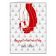 This design shows the silhouette of a couple in red colour. The grey background has simple geometric round white pattern-shaped hearts. Use this product whenever you feel the need to send a love message to your sweetheart or any romantic occasion or event or to celebrate Valentine's Day. Words on the front of the card and be personalised.