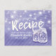 Bridal Shower Recipe Card Templates - Elegant Lettering Script and Vintage Couple Mason Jars and String Lights on Purple Violet Colour Background.