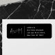 Add a touch of personal elegance to every piece of mail you send. This return address design features your beautifully intertwined couples' monogram in a flowing, handwritten script, creating a romantic and signature look. Just below, your full names and address are presented in a clean, modern sans-serif font, ensuring perfect readability and a chic, contemporary finish. It’s the ideal way to make your correspondence—from wedding invitations to holiday cards—look polished and personal.