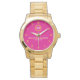 minimalist couple watch, personalized monogram watch, pink background wristwatch, yellow Roman numerals, custom name couple gift, elegant anniversary watch, wedding keepsake, modern love watch, romantic personalized wristwatch, stylish monogram timepiece
