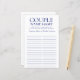 This lovely modern navy blue Couple Name Game bridal shower game sheet is perfect for any shower. This fun and easy game is sure to bring lots of laughter to any bridal shower. Simply give a sheet to each guest (don't forget the pens) and let the fun begin! You'll be amazed at how many different words people come up with using the bride's full name. To make this game your own simply select Personalise this template and type in the bride and groom's names.