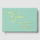 This guest book offers the perfect place for your friends and family to pen their signatures and heartfelt messages. Crafted from premium materials, it features the titles 'Mr and Mrs' in a sophisticated gold script, all set upon a chic, sophisticated mint green background. Customise it with your family name and the date of your wedding to make it uniquely yours. This treasured memento will act as a lovely token of your special day for many years.