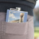 The flask itself is fine. It’s a cheap flask, obviously bought in bulk, however am prepared to overlook that. Given that it is a personalized item, I would have liked to have seen gift boxing instead of the generic packaging. Terrible printing, and/or quality. It’s a cheap, tacky vinyl. It is not cut straight and is also applied in a way that it is overhanging the bottom, causing the glue to catch on items and it will eventually roll and tear, damaging the wrap.