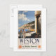 Weston-super-Mare, England - Couple Overlooking Coast Railway Poster - Weston-super-Mare, England was created in 1950. This image depicts scenes from Weston-super-Mare, England.
