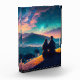 A beautiful digital painting of a couple sitting on a rooftop at night, gazing at the stars. The sky is filled with stars of all colours, and the Milky Way is visible in the distance. The couple is sitting close together, and they look like they are enjoying each other's company and the beauty of the night sky.
