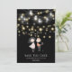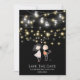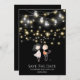 Couple standing under string lights cartoon save the date