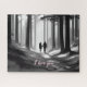 Couple Strolls Down Black & White Forest Path Jigsaw Puzzle