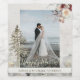 Wedding bride and groom photo in a watercolor washed frame with winter botanical flowers and greenery and a pine tree. +++++++ Easy to personalise with your text and couple names.