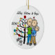 A pretty round ceramic keepsake Christmas holiday ornament features a stick figure couple with a baby boy in a blue blanket and a cat standing in front of the decorated Christmas tree with areas you can easily customise with names and date to the current year! This beautiful holiday keepsake ornament makes a great gift for anyone who had a new baby boy in the current year!