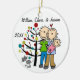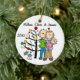 A pretty round ceramic keepsake Christmas holiday ornament features a stick figure couple with a baby girl in a pink blanket and a cat standing in front of the decorated Christmas tree with areas you can easily customise with your names and date to the current year! This beautiful holiday keepsake ornament makes a great gift for anyone who had a new baby girl in the current year!