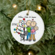 A pretty round ceramic keepsake Christmas holiday ornament features a stick figure couple with a baby girl in a pink blanket and a grey dog standing in front of the decorated Christmas tree with areas you can easily customise with your names and date to the current year! This beautiful holiday keepsake ornament makes a great gift for anyone who had a new baby girl in the current year!