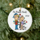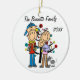 A pretty round ceramic keepsake Christmas holiday ornament features a stick figure family including a dad, mum, boy, baby boy, and family cat in front of a decorated Christmas tree with areas you can customise with your family name and the current year! This cute holiday keepsake ornament makes a great gift for the young family to commemorate a special year!