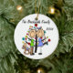 A pretty round ceramic keepsake Christmas holiday ornament features a stick figure couple and young son in front of a decorated Christmas tree with areas you can customise with your family name and the current year! This cute holiday keepsake ornament makes a great gift for the young family to commemorate a special year!