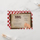 Great invitation for couples having a BBQ reception after the marriage. Invitation has a red and white chequered background and a graphic of a pig.
