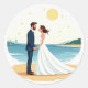 Includes 20 small stickers on one sheet. Create a memorable moment with this romantic beach wedding sticker featuring a bearded groom and bride sharing a kiss at the shoreline. Perfect for wedding gifts or anniversary celebrations!